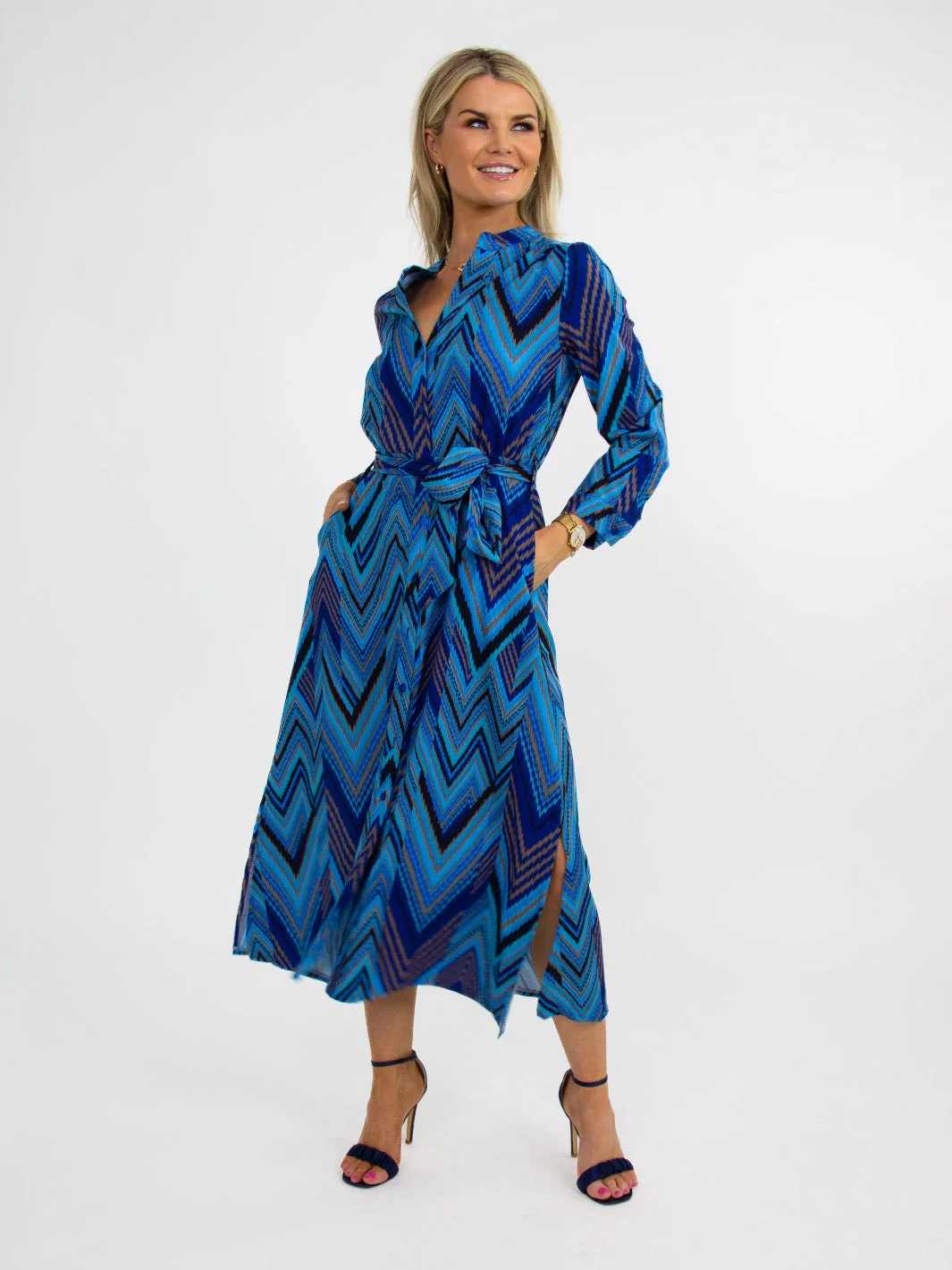 Kate & Pippa Capri Dress In Blue Mizzoni Print