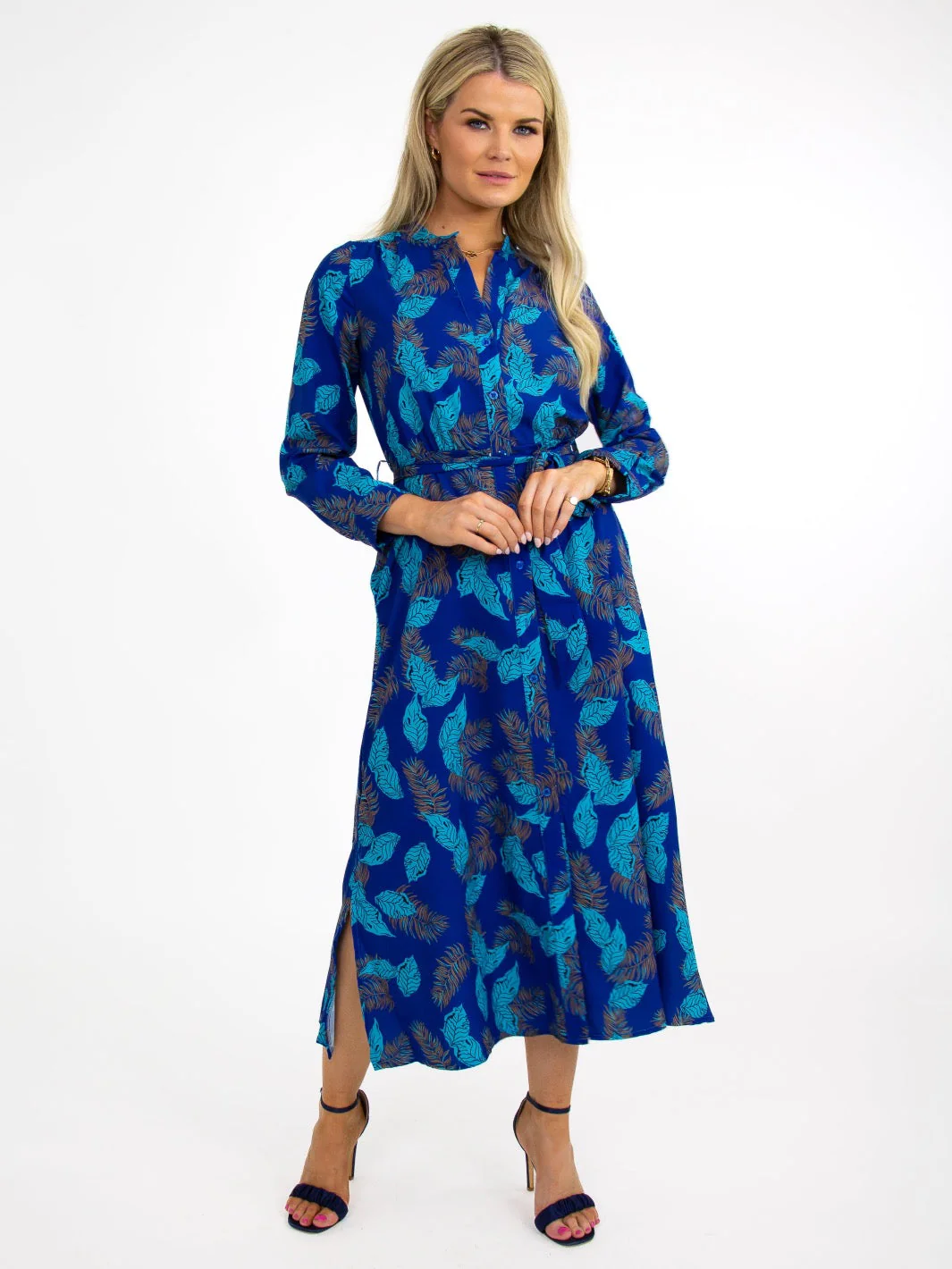 Kate & Pippa Capri Dress In Blue Feather Leaf Print