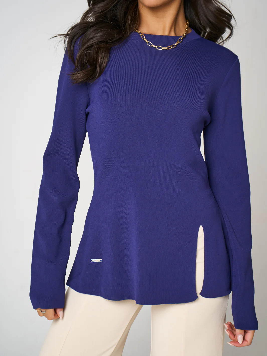 Sleek, sophisticated, and effortlessly modern—the Luxe Slit Detail Top is a wardrobe hero for both work and evenings out. Designed in a timeless navy, this long-sleeve style features a flattering fitted shape and an elegant side slit for ease of movement and a touch of contemporary flair. Crafted from a smooth, structured fabric, it drapes beautifully while holding its shape all day.